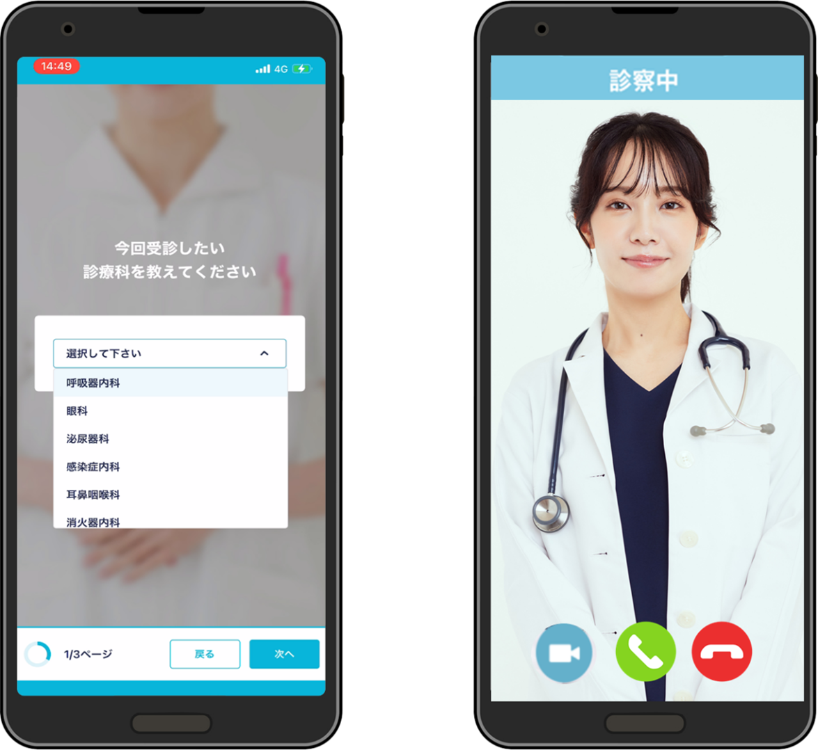 本機能では、SOKUYAKU内の「今すぐ診療を受ける」ボタンをクリックすることで、予約手続き不要で、診療科目を選ぶだけで、すぐにオンライン診療の受診が可能となります。