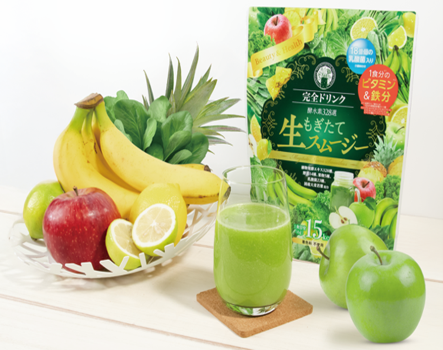 ※1.商品名:完全ドリンク酵水素328選もぎたて生スムージー(※)