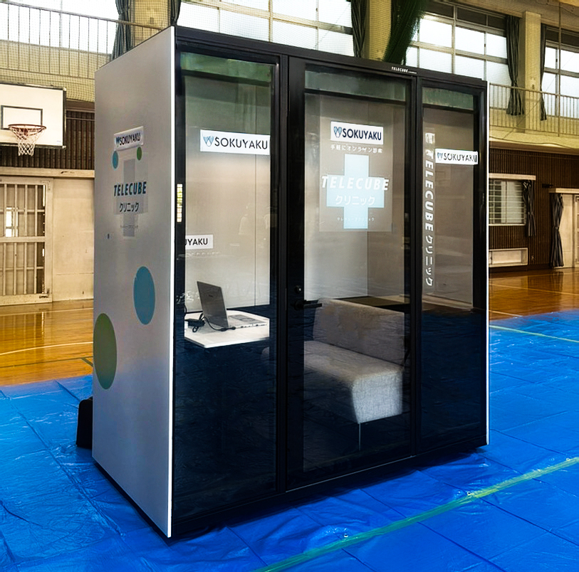[総合防災訓練で使用されたオンライン診療ブース(株式会社ブイキューブ提供)]